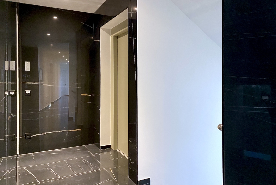 L’alloggio è situato al secondo piano con ascensore ed è composto da ingresso su zona giorno con cucina a vista (Stosa) con accesso diretto ad un ampio balcone, un ripostiglio con colonna lava-asciuga privata, un secondo bagno con doccia e finestra, una camera da letto matrimoniale con balcone. L’appartamento è dotato di un impianto di riscaldamento con gestione autonoma per singolo vano e raffrescamento con deumidificazione controllata elettronicamente, serramenti/infissi triplo vetro della schüco e domotica.